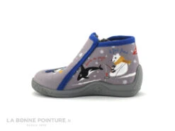 La doublure des pantoufles zippées garçon est en tissu éponge, et la semelle de propreté en cuir possède une voûte plantaire.