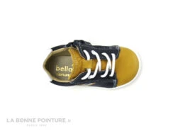 Cette chaussure montante garçon Bellamy Rafal est en cuir jaune curry et bleu marine, avec une petite touche de blanc.
