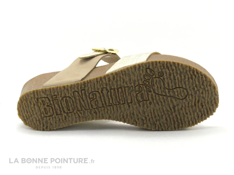 Les tongs anatomiques à talon compensé BioNatura 28A729, des tongs dorées et brillantes au meilleur rapport qualité/prix pour la saison estivale !
