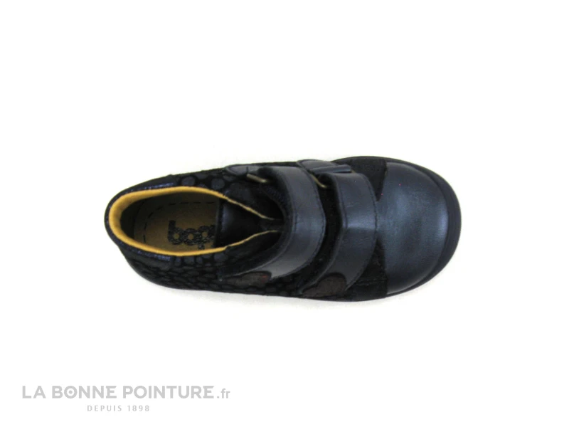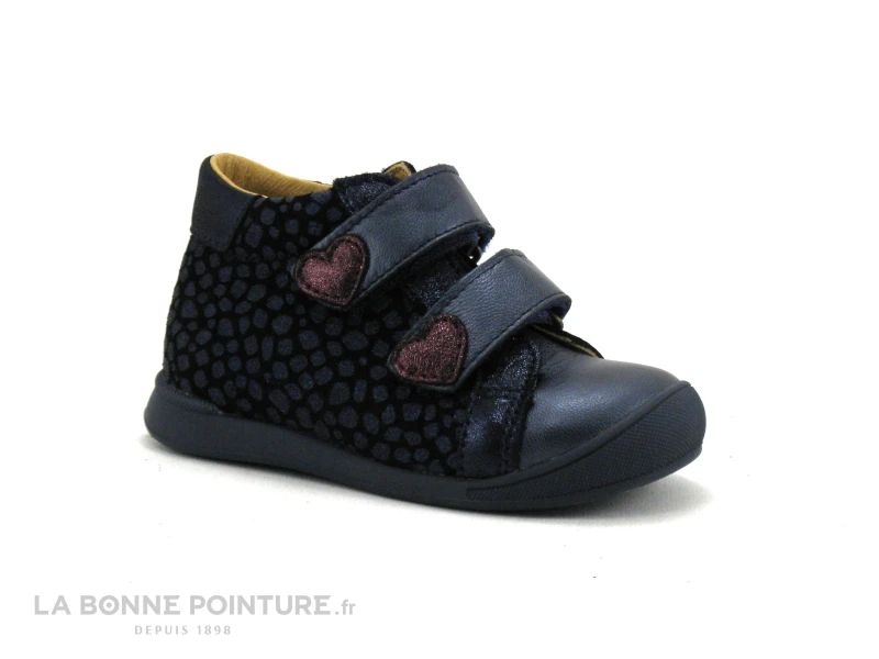 Cette belle chaussure montante fillette Bopy Ugoline est en cuir velouté noir et bleu marine métallisé.