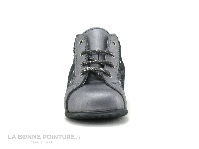 Cette chaussure montante fille Bopy Zenui combine un cuir gris mĂ©tal avec un cuir veloutĂ© et argentĂ©, parsemĂ© de petites Ă©toiles…
