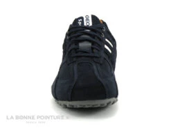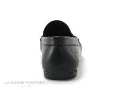 Ce mocassin souple Homme Dingo 7159 est en cuir lisse noir non doublé, avec couture apparente sur le devant de la chaussure.