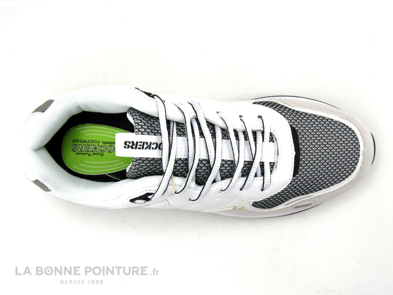 Le lacet bicolore noir et blanc traverse 6 oeillets afin de lacer efficacement la basket Dockers Homme.Â