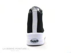 Cette basket montante plateforme Femme – Fille Dockers est en toile noire, avec une bande blanche verticale Ă l’arrière de la chaussure.