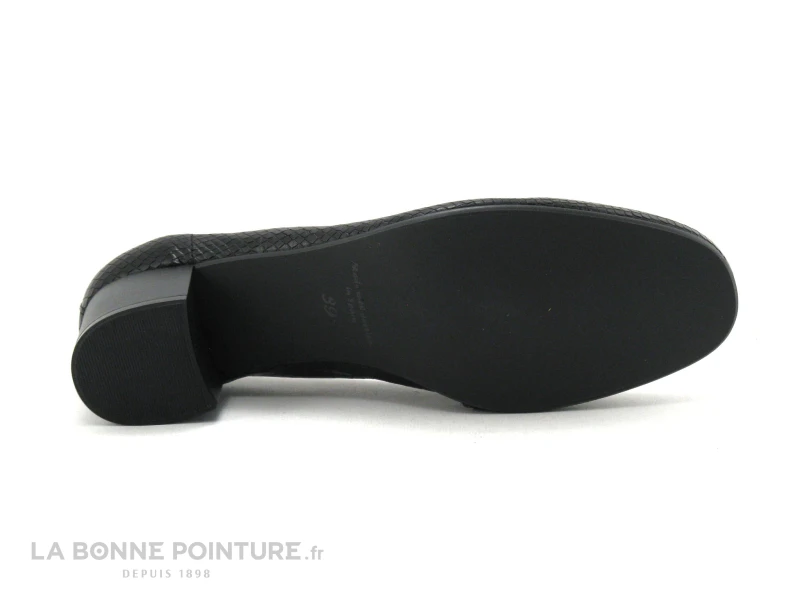 La semelle de marche de l’escarpin Folie’s Maho noir est souple, et le talon mesure environ 5 cm de hauteur, Ă©pais et ainsi bien stable.