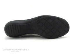 Son dessus cuir veloutĂ© argentĂ© est agrĂ©mentĂ© de deux empiècements latĂ©raux en tissu nĂ©oprenne extenssible aux motifs gris et argents. Celui-ci a la particularitĂ© de s’adapter aux dĂ©foramtions du pied type oignons et hallux valgus.