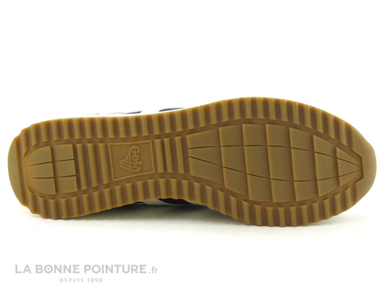 La semelle de marche des sneakers Gola Homme est beige sur une base en caoutchouc marron, assez lĂ©gère et Ă©paisse d’environ 3 cm au talon.