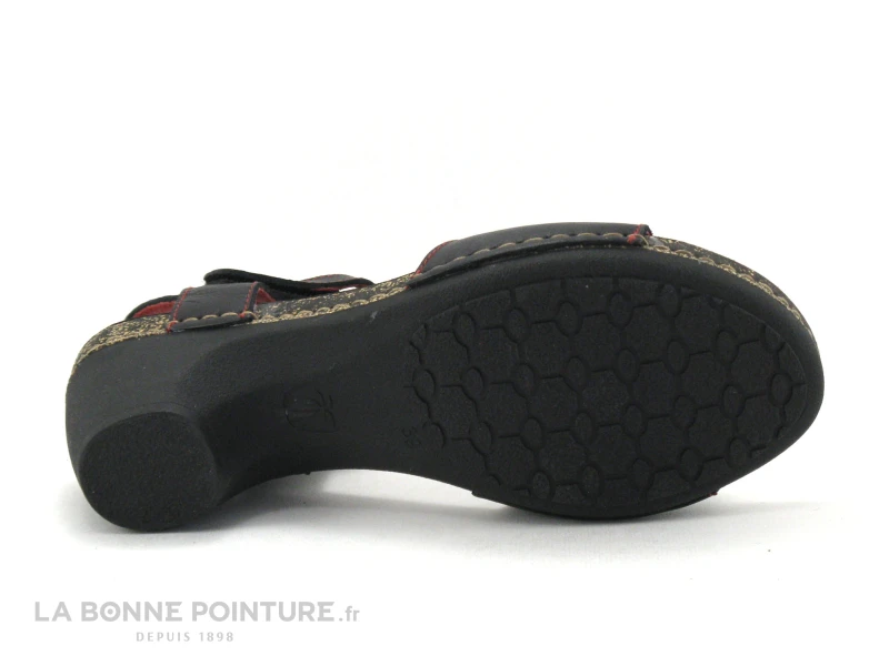 Ce nu-pieds mode Femme Jungla 7679 est en cuir noir, avec les coutures qui contrastent en rouge.