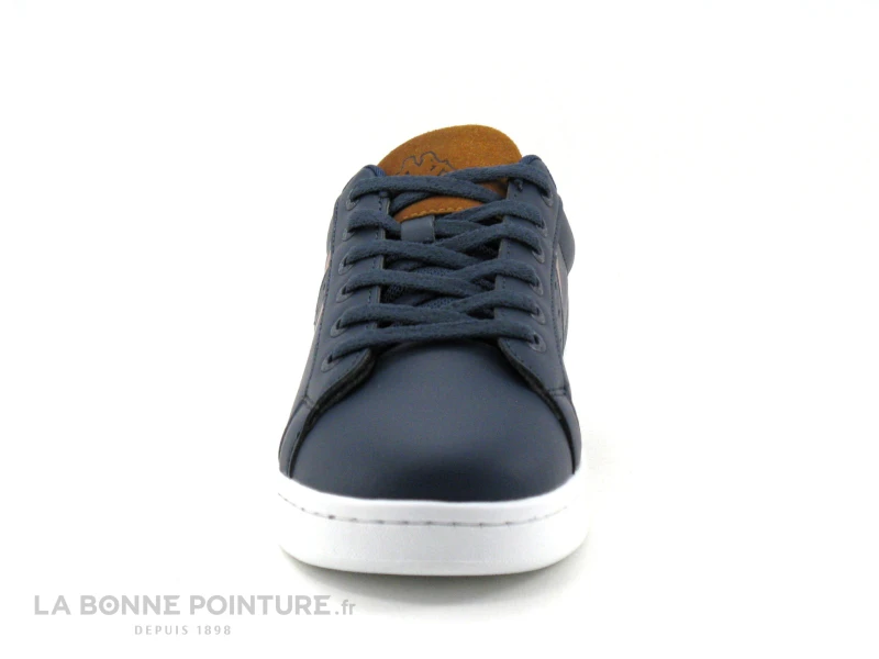 Cette basket mode fille ou garçon Kappa Alpha est principalement en simili cuir bleu marine, avec du marron camel.