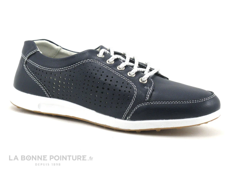 Cette chaussure basse Femme est en cuir bleu marine, avec de fines perforations sur les côtés.
