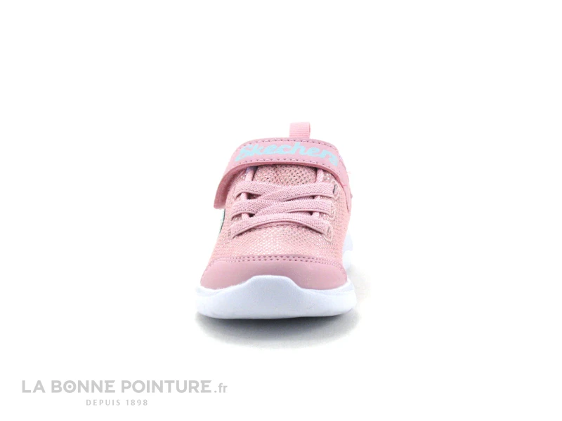 Le lacet Ă©lastique rose permet d’enfiler rapidement la chaussure bĂ©bĂ© Skechers Easy Peasy. Fermeture aisĂ©e avec la bride Ă velcro.