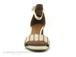 Cette sandale mode Femme Tamaris 1-28259 est en cuir et simili cuir ivoire et marron camel, avec un contrefort.