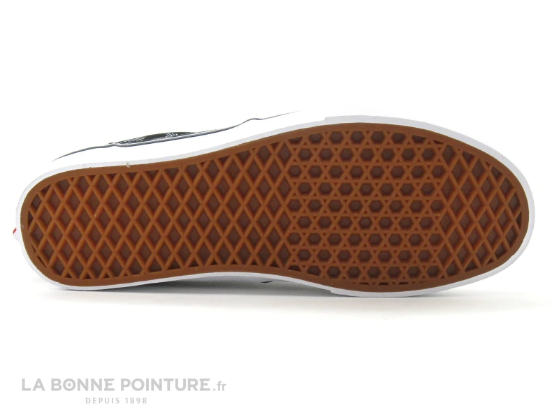 La semelle de marche est souple avec Ă l’arrière la petite Ă©tiquette rouge « Vans Off the Wall ».