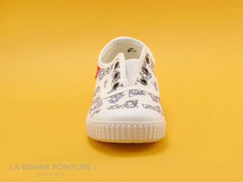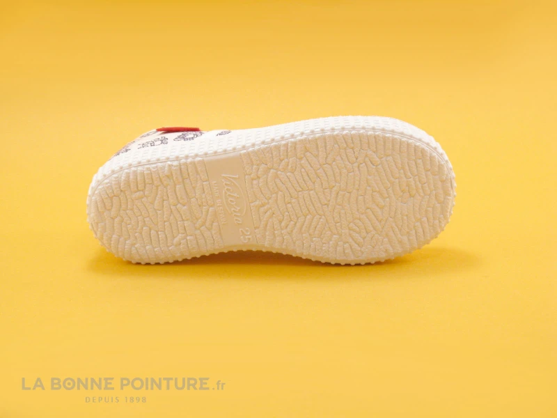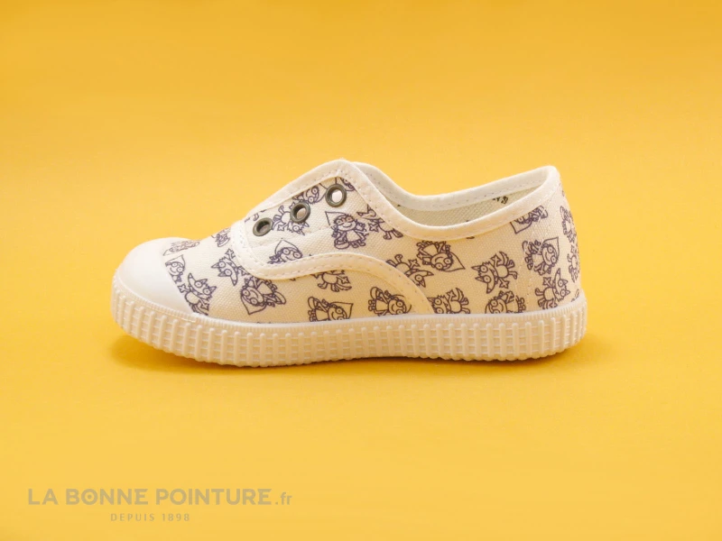 La marque Victoria s’associe Ă Kukumuxu, une marque originaire du Pays Basque pour ces chaussures enfant en toile Victoria 366901 Blanco kukuxumusu !