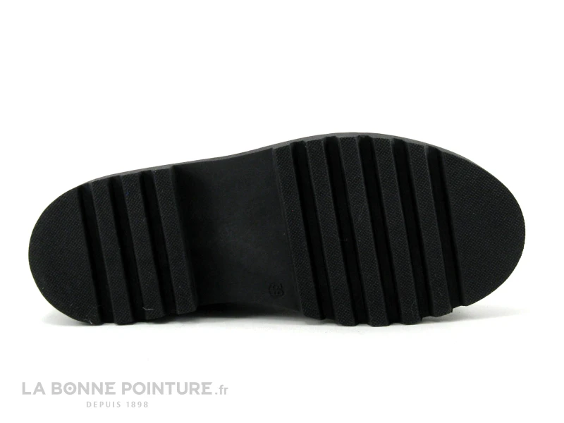 La semelle de marche Ă©paisse est aussi crantĂ©e, avec un talon d’environ 4 cm d’Ă©paisseur.