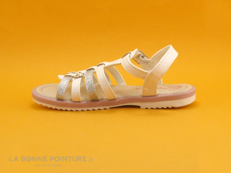 Wipop YETOILE Blanc Argent Fleurs – Sandale Fille