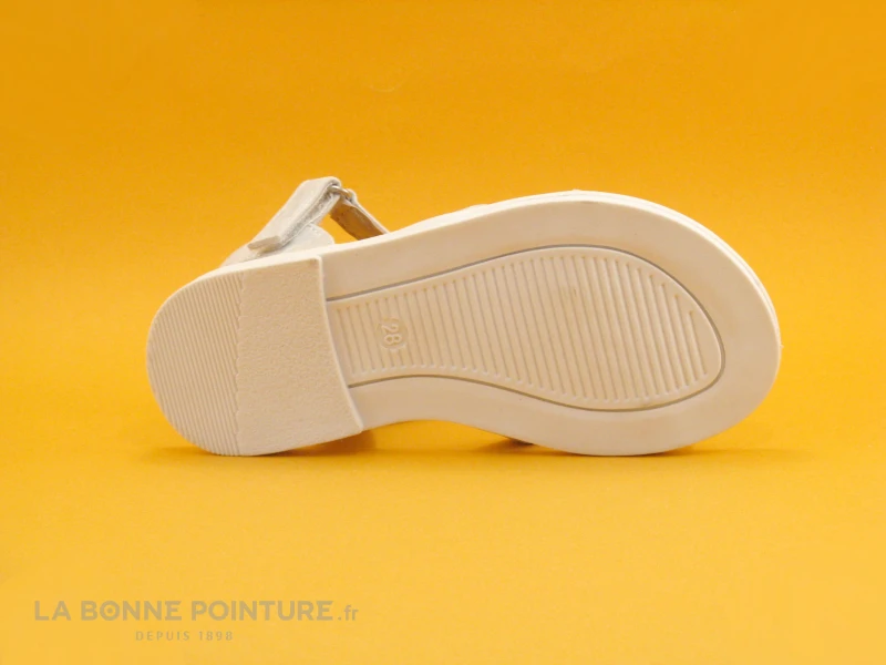 Ces jolies sandales fille Wipop Yoeur sont blanc mĂ©tallisĂ©, avec un coeur sur le dessus ornĂ©e de perles brillantes roses et bleues…