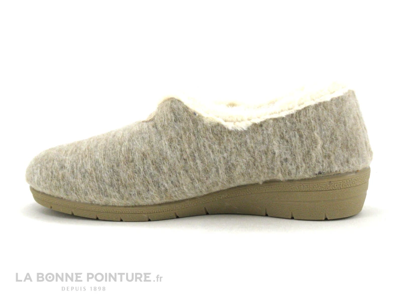 Zels 3276 Beige – Chausson Femme IntĂ©rieur Laine – Talon Compense
